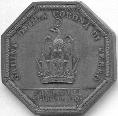 Reverse: ORDINE DELLA CORONA DI FERRO. A fanciful crown with a portrait
