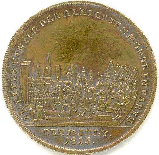 Obverse: ZWEITER EINZUG DER ALLIERTEN MONAR. IN PARIS. (Second entry
