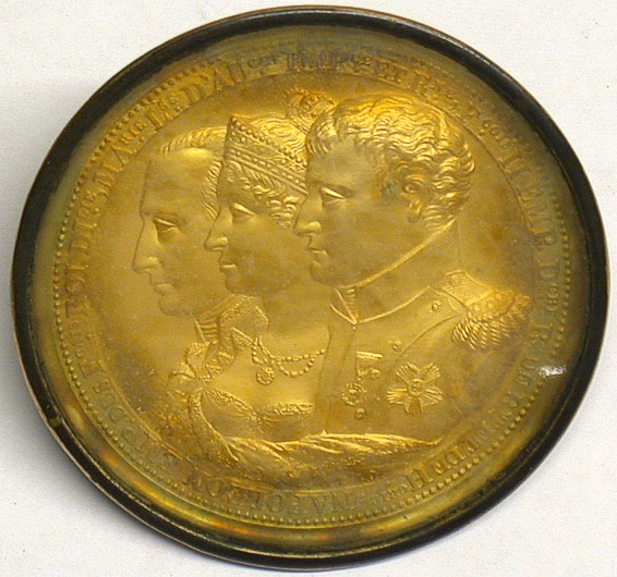 Repoussés like this were made by hammering a thin sheet of metal (usually copper) into the die. In this particular case the die was one of three engraved by Heurthaux to commemorate the wedding of Napoleon and Marie Louise of Austria. In the Empire volume of the Trésor de Numismatique repoussés of the three dies are listed as 42.7 (62 mm.), 42.8 (35 mm.) and 42.9 (27 mm.) Julius 2330 is a lead cliché from the 62 mm. die and Julius 2331 a repoussé from the 23 mm. die.